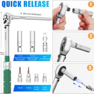 - Umfangreiches Set für den sofortigen Start: Durch die Verlängerungsstange, das Universalgelenk und die speziellen Zündkerzeneinsätze bist du für die meisten Standard-Reparaturen am Kfz sofort gerüstet.