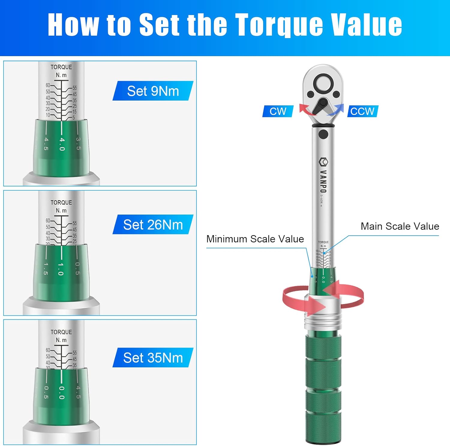 Produktbeschreibung für VANPO Drehmomentschlüssel 3/8″