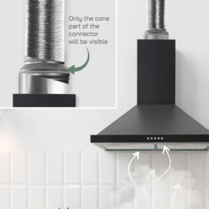 Für eine sichere und dichte Verbindung verwenden Sie ein passgenaues Übergangsstück von Vent Systems. Mit diesem Reduzierstück können Sie problemlos zwischen den unterschiedlichen Durchmessern wechseln, wobei das Bauteil als „male fit“ direkt in die entsprechenden Rohre eingesetzt wird.