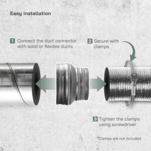 - Zur Fixierung der Verbindung empfehlen wir den Einsatz von Alu-Klebeband oder geeigneten Schlauchschellen (nicht im Lieferumfang).