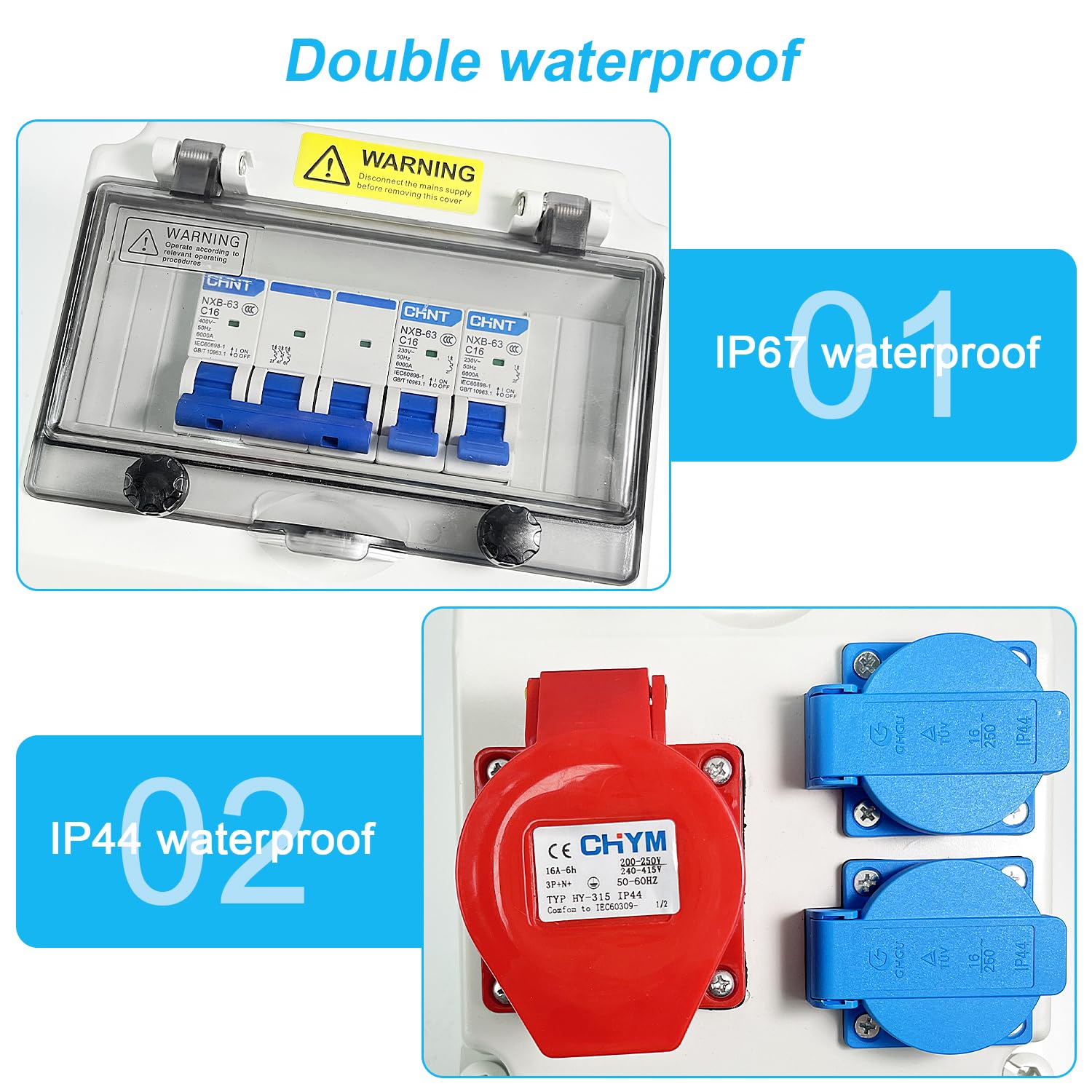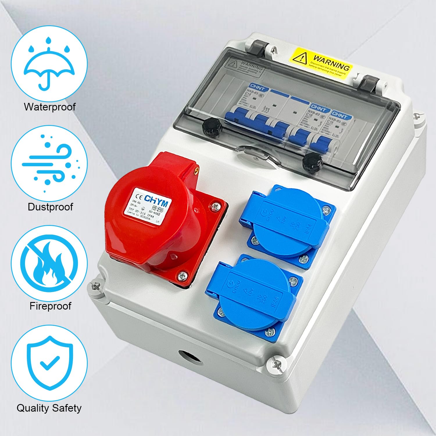 - Hoher Schutzstandard: Durch die Schutzarten IP54 für die Steckdosen und IP67 für die Fensterabdeckung ist der Verteiler effektiv gegen Feuchtigkeit, Staub und Schmutz geschützt.