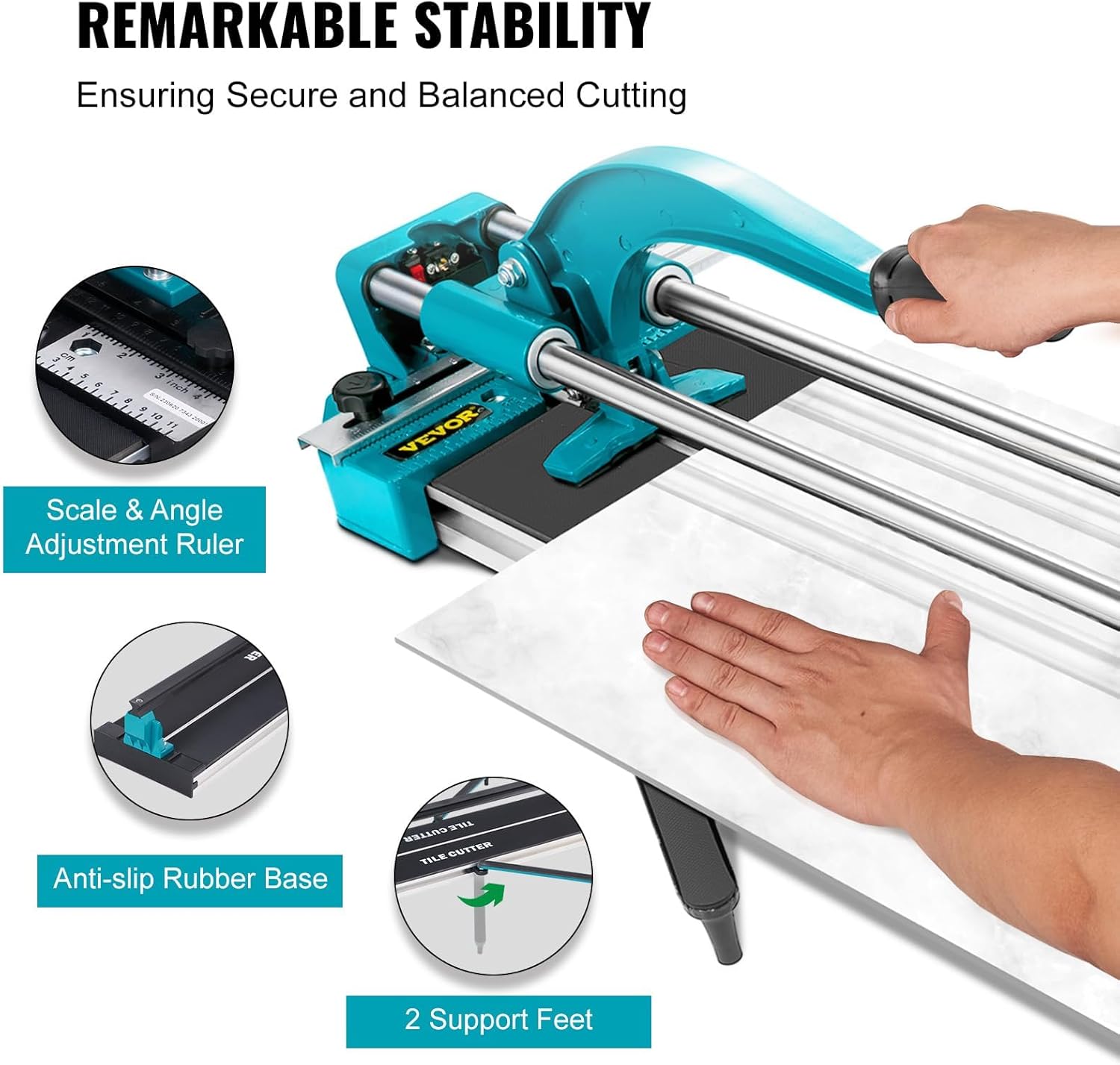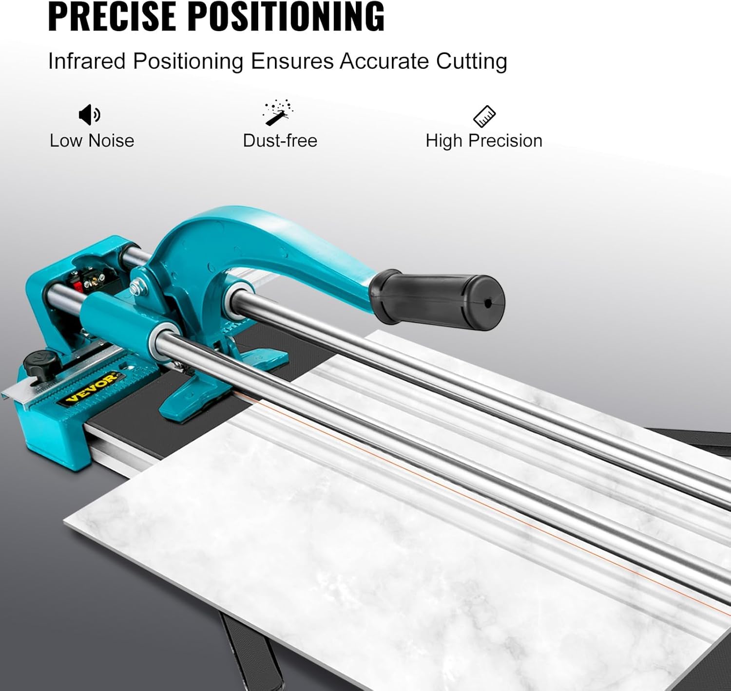 Wer bei der Fliesenverlegung im Innenbereich Wert auf Effizienz legt, greift zum VEVOR 600mm Fliesenschneider. Die Konstruktion basiert auf einem soliden Aluminiumrahmen, der durch zwei parallel verlaufende, gehärtete Schienen verstärkt wird. Diese Schienenführung stellt sicher, dass das superharte Legierungsschneidrad stets in der Spur bleibt. Das Ergebnis sind saubere Trennungen, bei denen die Kanten kaum nachgearbeitet werden müssen.