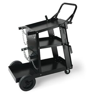 VEVOR Schweißwagen 3 Ablageflächen Schweißmobil Max. 168-181kg Wagen für Schweßgeräte mit 2 Gasflaschenhalterung Ideal für Handschweißen Schutzgasschweißen Argon-Lichtbogenschweißen