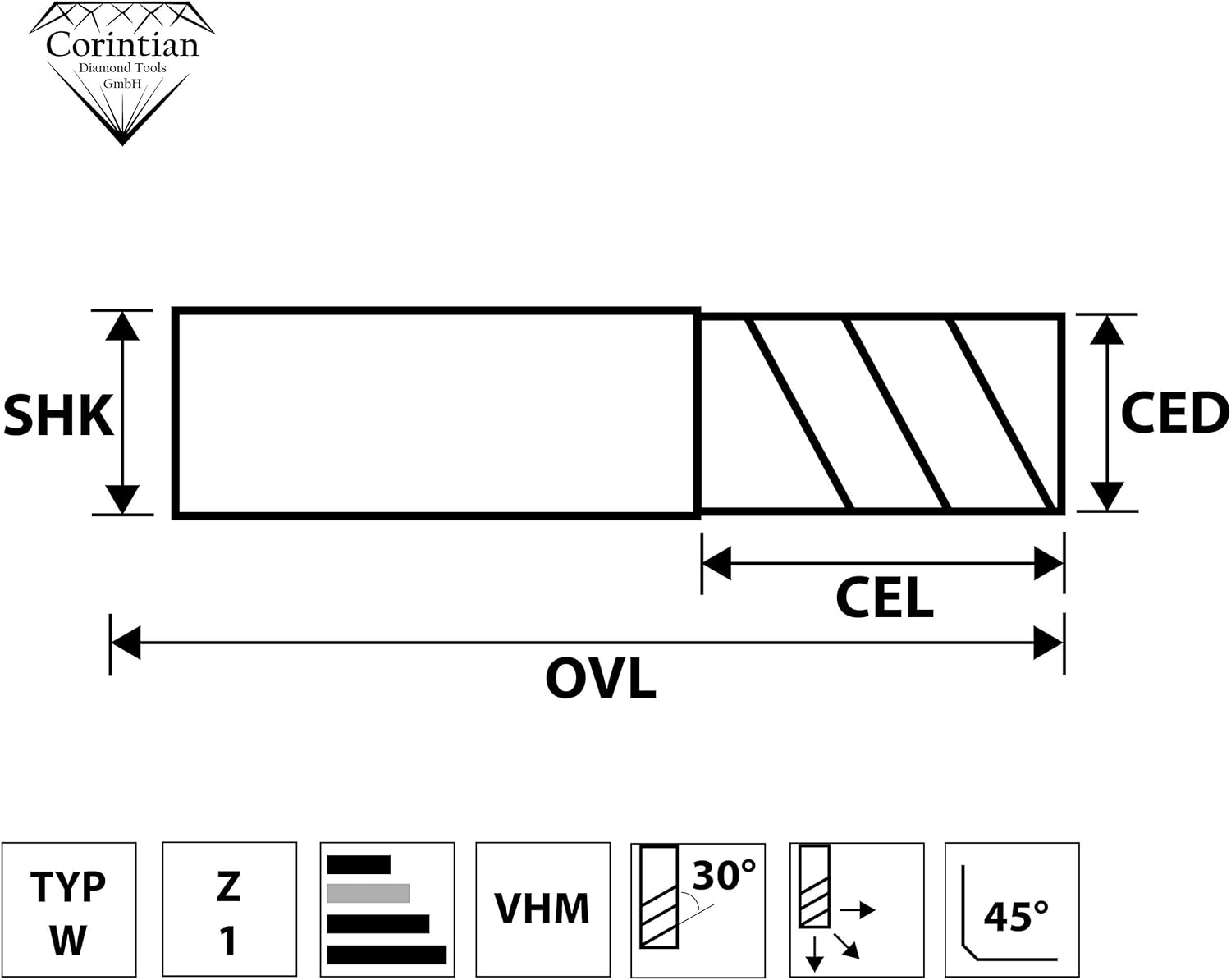 | Material | Vollhartmetall (VHM) |