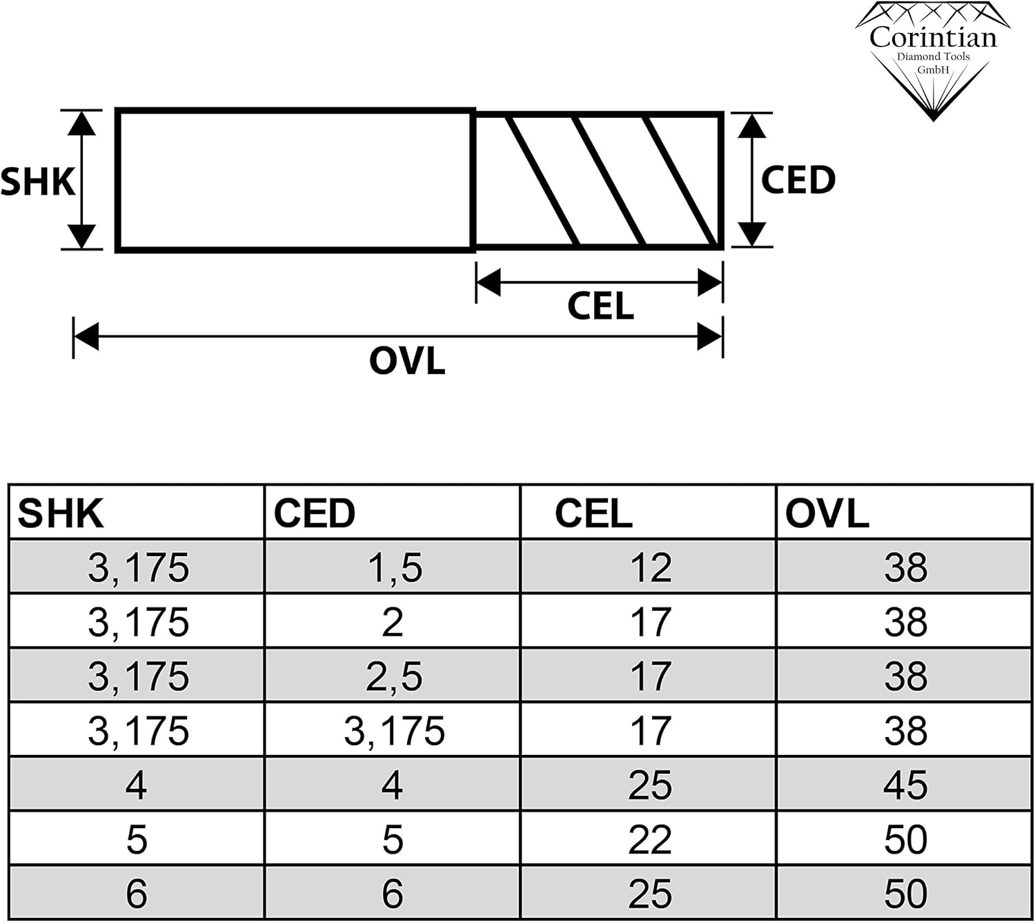 - Optimale Helix: Der 30° Helix Winkel zieht die Späne zuverlässig nach oben aus der Nut, was die Hitzeentwicklung am Werkstück minimiert.