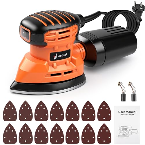 Victool Deltaschleifer 13000 RPM, Elektrischer Holzschleifer mit 14 Schleifpapier und Staubsammler, Schleifmaschine Ideal für Schleifen, Polieren, Entfernen, Holzwerkstatt DIYVictool Deltaschleifer 13000 RPM, Elektrischer Holzschleifer mit 14 Schleifpapier und Staubsammler, Schleifmaschine Ideal für Schleifen, Polieren, Entfernen, Holzwerkstatt DIY