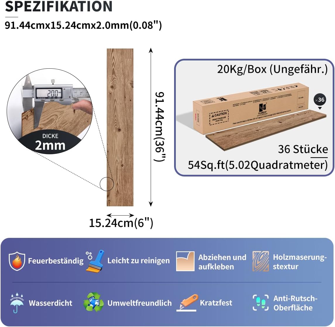 - Schnelle Montage: Dank der selbstklebenden Rückseite entfällt der Kauf von zusätzlichem Leim, was die Verlegezeit massiv verkürzt.