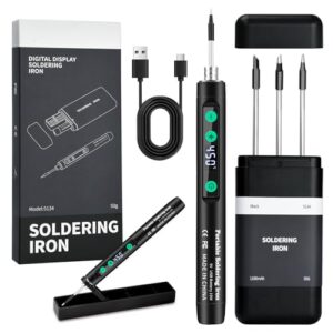 VOKTTA Lötkolben Set mit Ständer, LCD Display Akku Lötkolben, Einstellbare Temperatur 180-450°C, 3 Lötspitzen, USB Lötstation Geeignet für Reparatur Leiterplatten, Schweißreparaturen – Schwarz