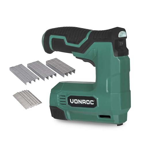 VONROC Akku Tacker & Nagelpistole - 2in1 Tacker für Holz, 4V Akku Nagler - Inkl. 900 Tackerklammern, 300 Nägel, 30 Schuss pro MinuteVONROC Akku Tacker & Nagelpistole – 2in1 Tacker für Holz, 4V Akku Nagler – Inkl. 900 Tackerklammern, 300 Nägel, 30 Schuss pro Minute