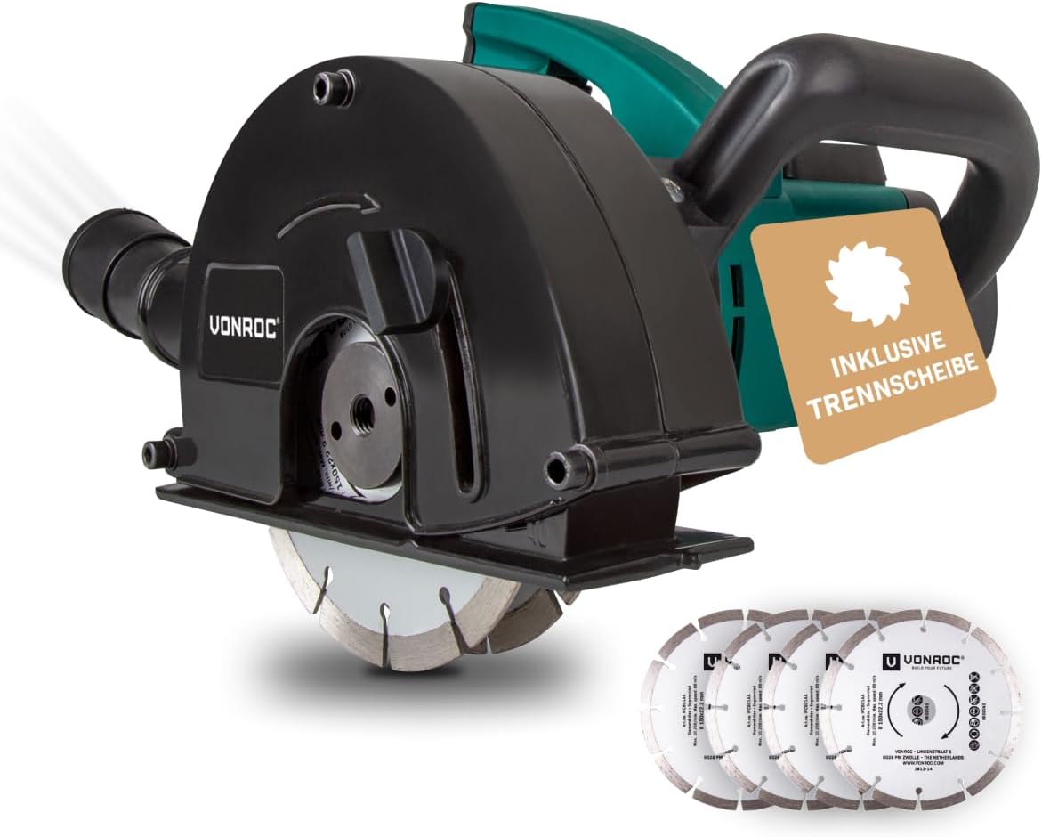 ![VONROC Schlitzfräse Mauernutfräse mit Absaugung [1700W] - Nutfräser für Kabelnut [14/19/29mm] - Schlitzmaschine 150mm mit Schnittiefe [4-40mm] inklusive 4 Diamantscheiben – Bild 3](https://werkking.de/wp-content/uploads/2026/04/61-gr2dLeL._AC_SL1201_.jpg)