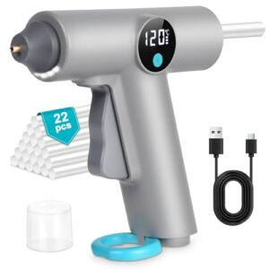 vsshe Heißklebepistole Akku, Heissklebepistole Kabellos mit 2500mAh Akku, Schnelles Vorheizen in 40S, LED-Anzeige, Klebepistole mit 22 Heißklebesticks, für DIY Handwerk und Reparieren in Haus & Büro