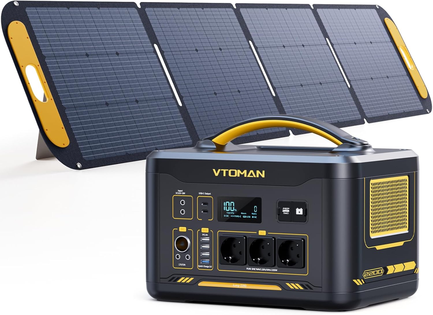 Die VTOMAN Jump 2200 Tragbare Powerstation mit 200W Solarpanel ist die autarke Energielösung für professionelle Handwerker, Montage-Teams und anspruchsvolle Heimwerker, die Strom abseits fester Netzanschlüsse benötigen. Mit ihrer Kombination aus hochbelastbarer LiFePO4-Technologie und effizienter Solar-Ladung liefert sie eine konstante Energieversorgung für schweres Elektrowerkzeug und empfindliche Elektronik gleichermaßen.