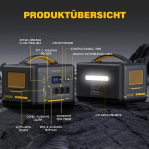 Die Powerstation ist mit einem hochwertigen LiFePO4-Akku ausgestattet, der auf eine lange Lebensdauer ausgelegt ist. Nach 3000 Ladezyklen behält der Akku noch immer 80 % seiner ursprünglichen Kapazität, was ihn zu einer sehr langlebigen und zuverlässigen Energiequelle macht.