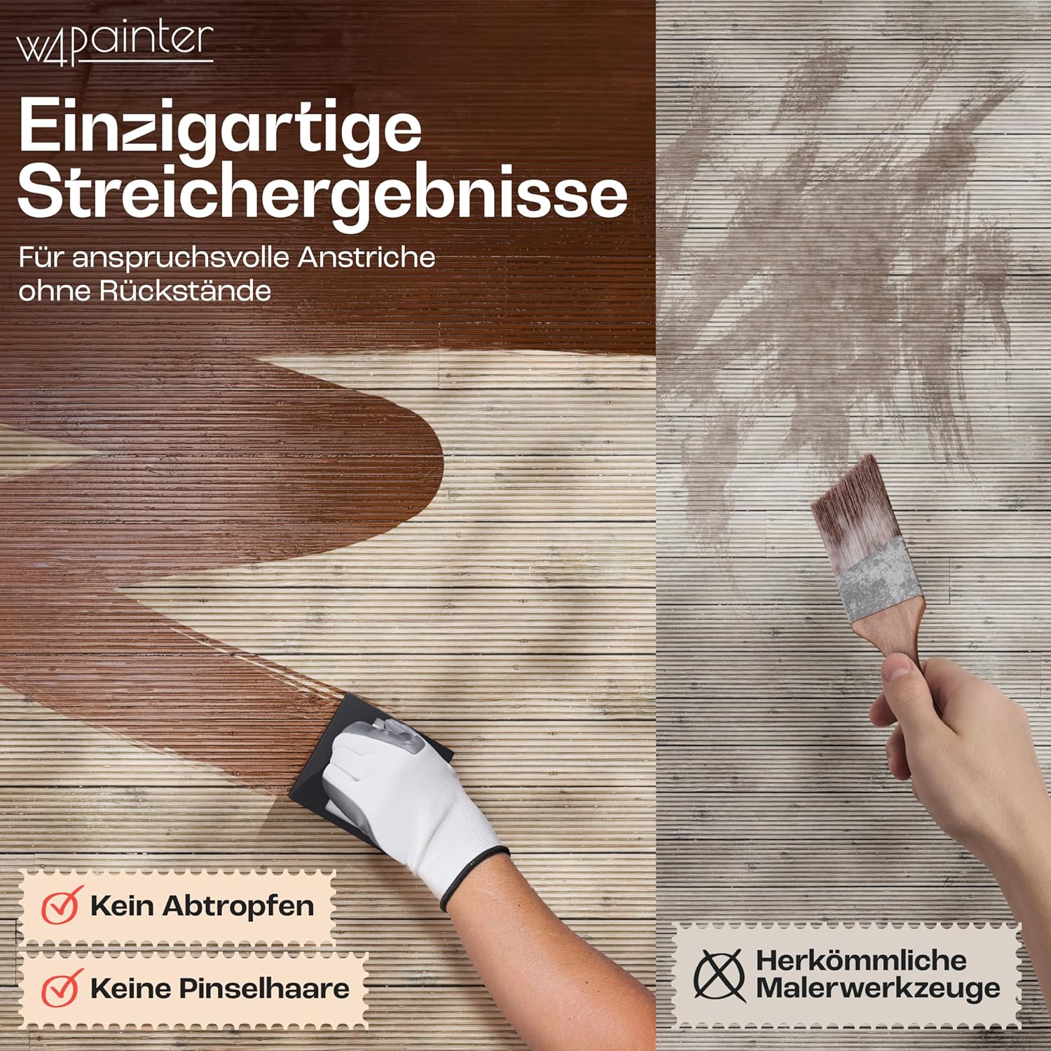 - Universelle Kompatibilität: Geeignet für alle gängigen Holzveredelungsprodukte, von dünnflüssigen Lasuren bis hin zu zäheren Ölen und Versiegelungen.