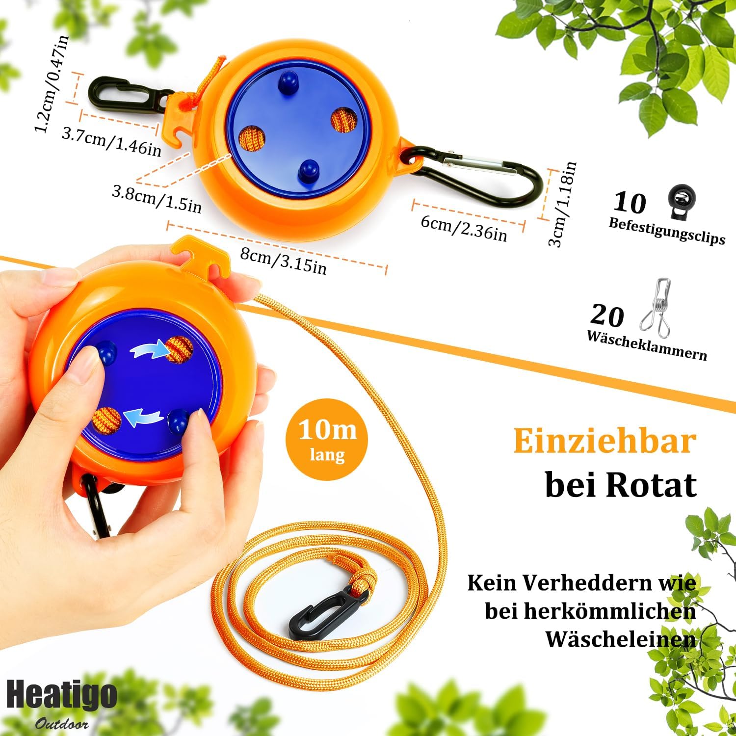 Die ausziehbare Wäscheleine ist die ideale Lösung für Handwerker, Monteure und Outdoor-Enthusiasten, die ihre Arbeitskleidung auch unterwegs effizient trocknen müssen. Mit einer Gesamtlänge von 10 Metern bietet dieses Set eine mobile Trockenmöglichkeit, die in jeder Werkzeugkiste oder jedem Reisegepäck Platz findet.
