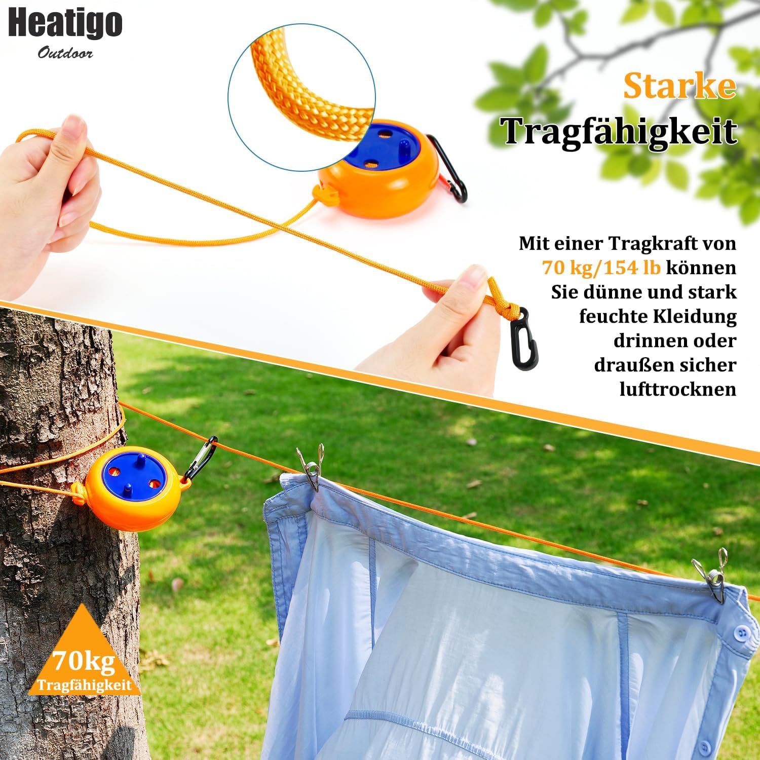 - Vielseitige Montage: Ohne aufwendige Bohrungen lässt sich die Leine zwischen festen Punkten (wie Rohren, Balken oder Geländern) spannen.