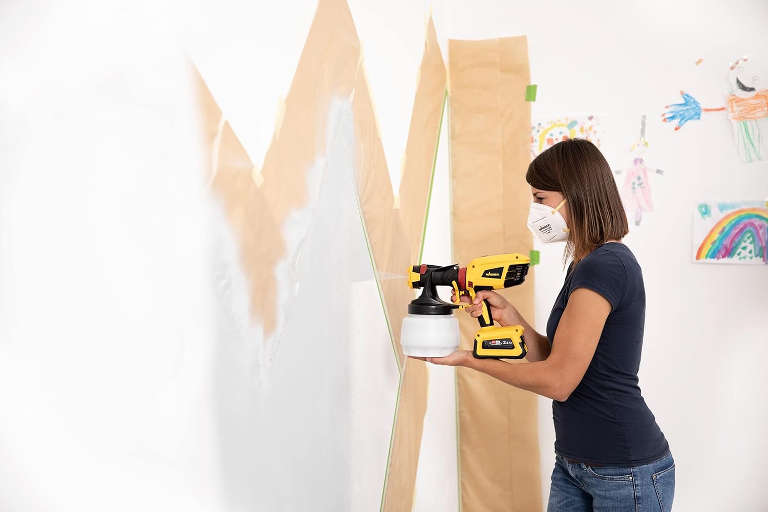 Das Gerät arbeitet mit modernster Akku-Technologie, die Ihnen bei der Arbeit unbegrenzte Bewegungsfreiheit bietet. Sie befüllen das Sprühsystem einfach mit dem gewünschten Material und können sofort mit dem deckenden Farbauftrag beginnen, ohne auf ein Netzkabel achten zu müssen.