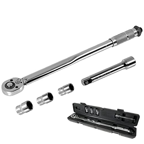 WALTER Drehmomentschlüssel-Satz 1/2" – Präzises Drehmoment 60-210 Nm, inkl. 3-tlg. Steckschlüssel-Set & Verlängerung, robuste Ausführung, einfache Handhabung mit Auswurftaste, hohe Auslösegenauigkeit