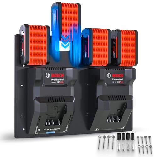 Wandfest® Wandhalterung für Bosch Akkus und Ladegeräte - Das Original | inkl. Befestigungsmaterial [Made IN Austria] Bosch Akku Halterung für 1-4 Akkus | Jetzt mehr Ordnung in Werkstatt und Garage