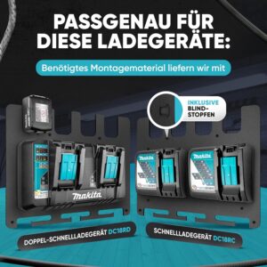 - Maximale Kompatibilität: Sowohl Einzel- als auch Doppelladegeräte (DC18RC & DC18RD) sitzen passgenau und sicher in der Halterung.
