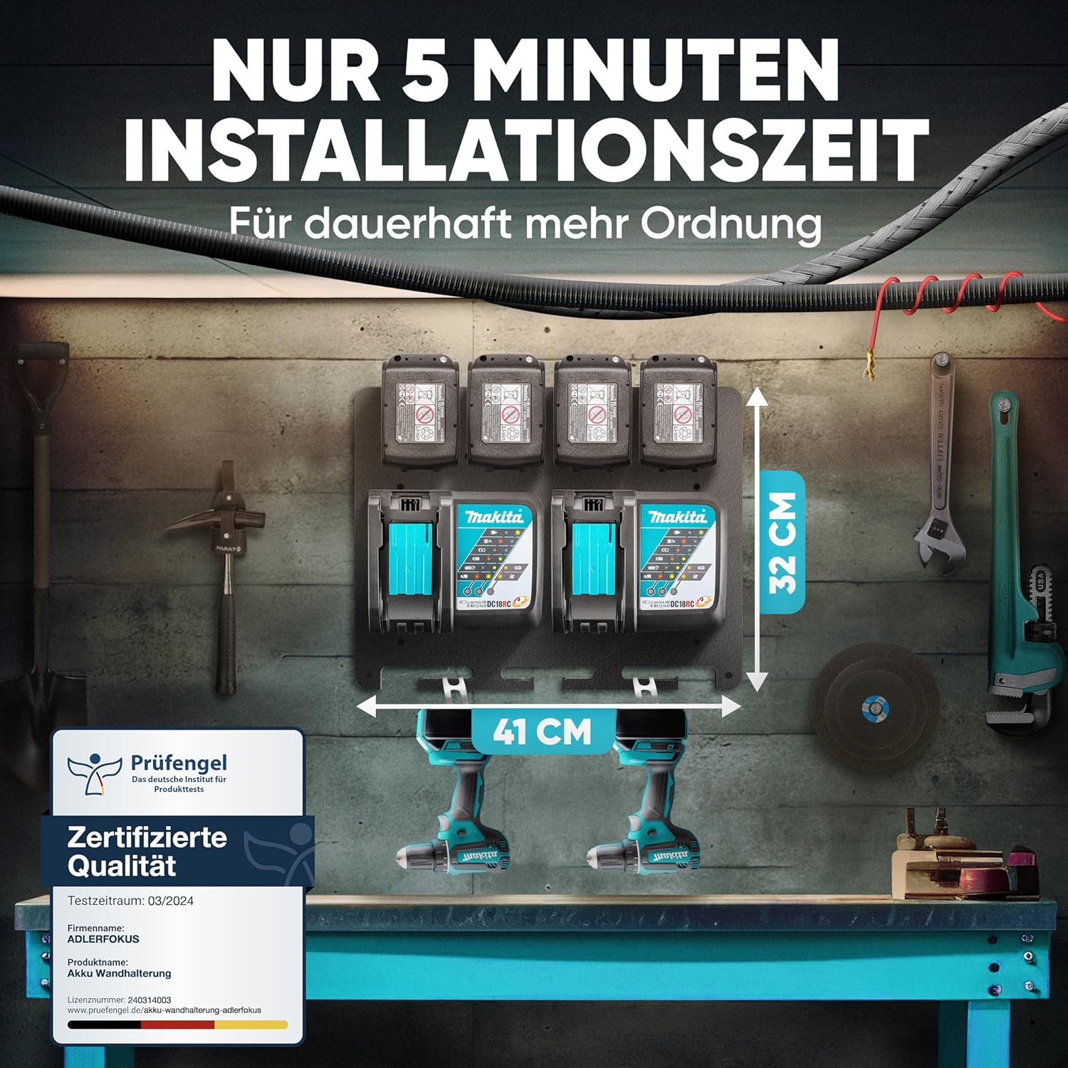 ![Wandhalterung für Makita Akkus & Ladegeräte [Made in Germany] Akkuhalter mit Premium Montagematerial - Makita Wand Halterung Ladegerät - Akku Wandhalterung für Ordnung & System – Bild 4](https://werkking.de/wp-content/uploads/2026/04/91Yj8k0cpSL._AC_SL1500_.jpg)