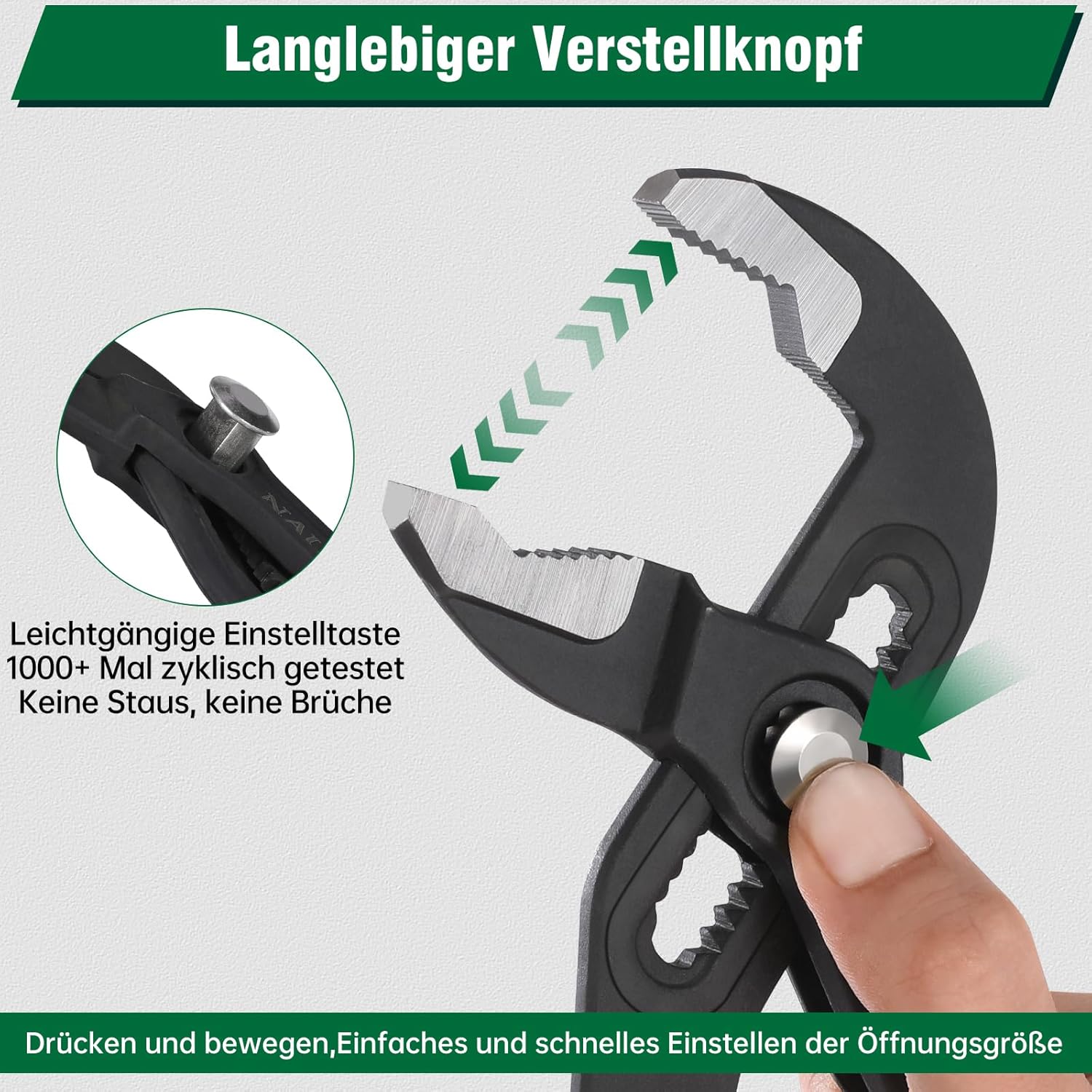 • Mit dem verstellbaren Drehknopf können Sie die Öffnungsweite ganz einfach anpassen und so Ihre Arbeitseffizienz steigern. Der ergonomische Griff ist rutschfest und liegt angenehm in der Hand, was Ihnen ein einzigartiges Erlebnis bietet.