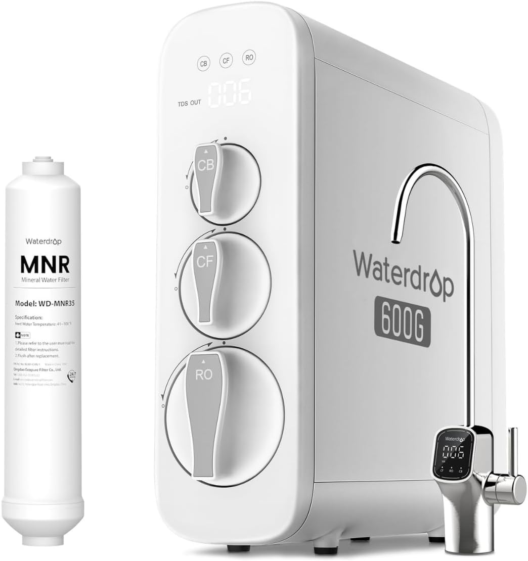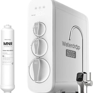 - [Vertrauenswürdige Zertifizierungen] Das Umkehrosmosesystem Waterdrop G3P600 ist nach NSF/ANSI 58 für TDS-Reduzierung und NSF/ANSI 372 für bleifreies Material zertifiziert. Das tanklose Umkehrosmosesystem ist außerdem von der Federal Communications Commission zertifiziert. Außerdem erfüllt es die EU- und UKCA-Sicherheitsstandards. Im Paket sind drei Filter enthalten. Suchen Sie nach Ersatzfiltern nach „WD-G3P600“.