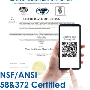 - [Vertrauenswürdige Zertifizierungen] Das Umkehrosmosesystem Waterdrop G3P600 ist nach NSF/ANSI 58 für TDS-Reduzierung und NSF/ANSI 372 für bleifreies Material zertifiziert. Das tanklose Umkehrosmosesystem ist außerdem von der Federal Communications Commission zertifiziert. Außerdem erfüllt es die EU- und UKCA-Sicherheitsstandards.