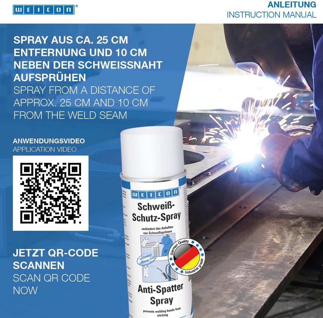 Das WEICON Schweißschutz-Spray dient dazu, das Anhaften von Schweißspritzern an Gas- und Schutzgasdüsen zu verhindern. Es schützt das Werkstück, ohne den Schweißvorgang zu beeinträchtigen, und sorgt so für ein sauberes Arbeitsergebnis. Das Produkt zeichnet sich durch eine hohe Kundenzufriedenheit aus und wird mit 4,7 Sternen bewertet.