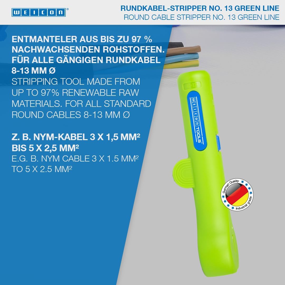 WEICON TOOLS Rundkabel-Stripper No. 13 Green Line | Nachhaltige Rohstoffe | Entmanteler für Rund- und Feuchtraumkabel von 6-13 mm Ø