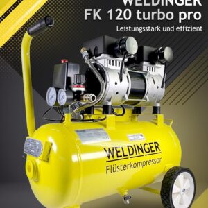- der WELDINGER Flüsterkompressor FK 120 turbo bietet hochwertige Komponenten und 150 l Luftabgabe/4 bar bei 1500 W Leistung