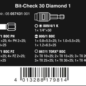 617 Rezensionen für Wera 05057431001 Sortiment, Bit-Check Diamond 1, 30-teilig, Stück & 05028160001 392 Bit-Handhalter mit flexiblem Schaft, 1/4 Zoll x 177 mm