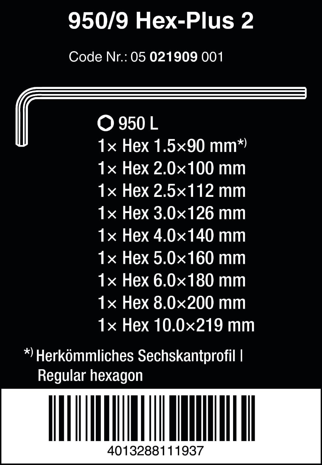 Technische Eigenschaften für das Produkt Wera 950 L/9 SM N Winkelschlüsselsatz