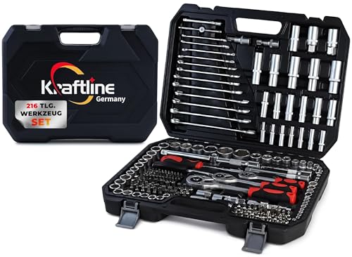 • MAXIMALE FLEXIBILITÄT MIT 3 RATCHEN: Unser Profi-Set enthält 3 umschaltbare Ratschen (1/4″, 3/8″ & 1/2″) mit Feinverzahnung für präzises Arbeiten an jedem Fahrzeugtyp. Gefertigt aus hochfestem Chrom-Vanadium-Stahl (Cr-V), bietet dieser 216-teilige Steckschlüsselsatz höchste Belastbarkeit und Langlebigkeit für Kfz-Profis und ambitionierte Schrauber.