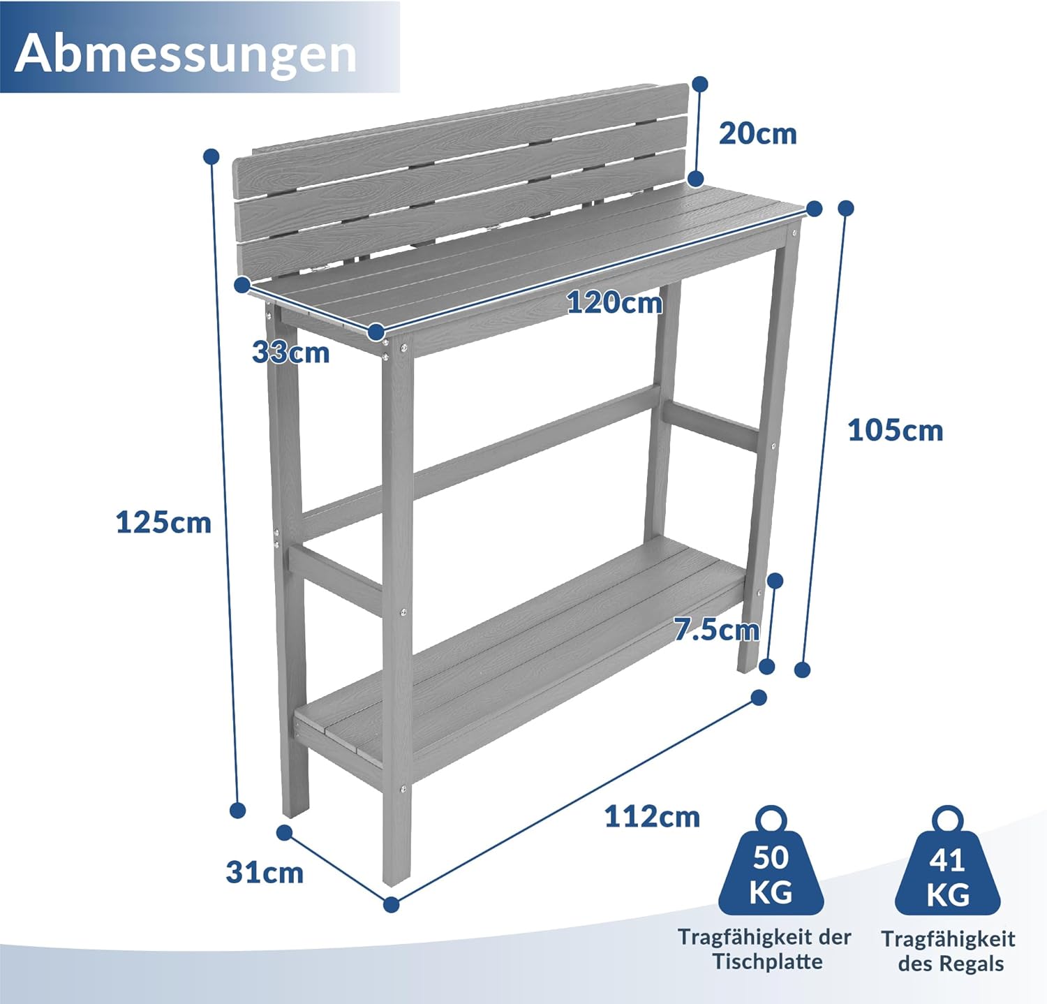 Technische Eigenschaften für das Produkt Wetterfester HIPS-Gartenbartisch