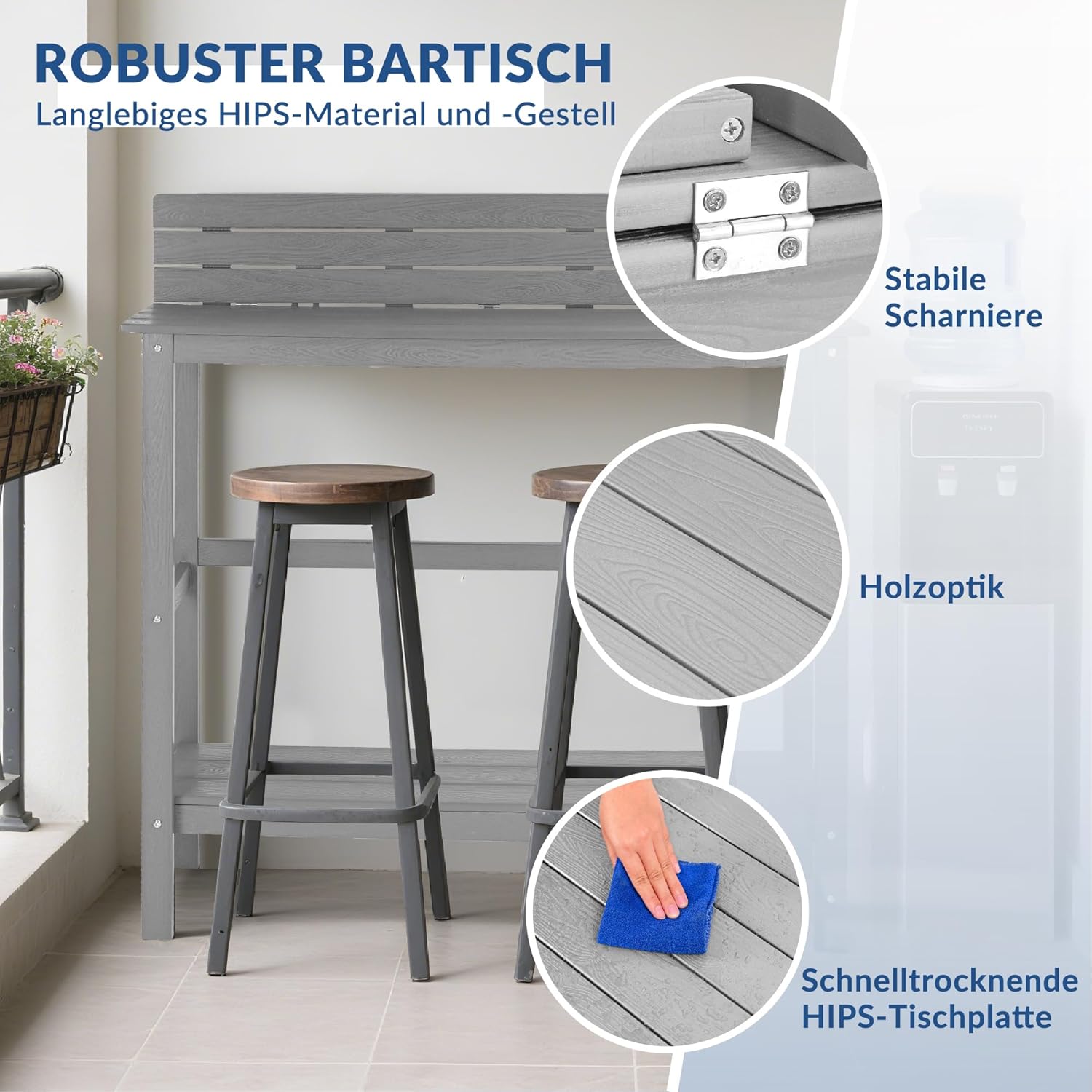 Vorteile des Produkts Wetterfester HIPS-Gartenbartisch