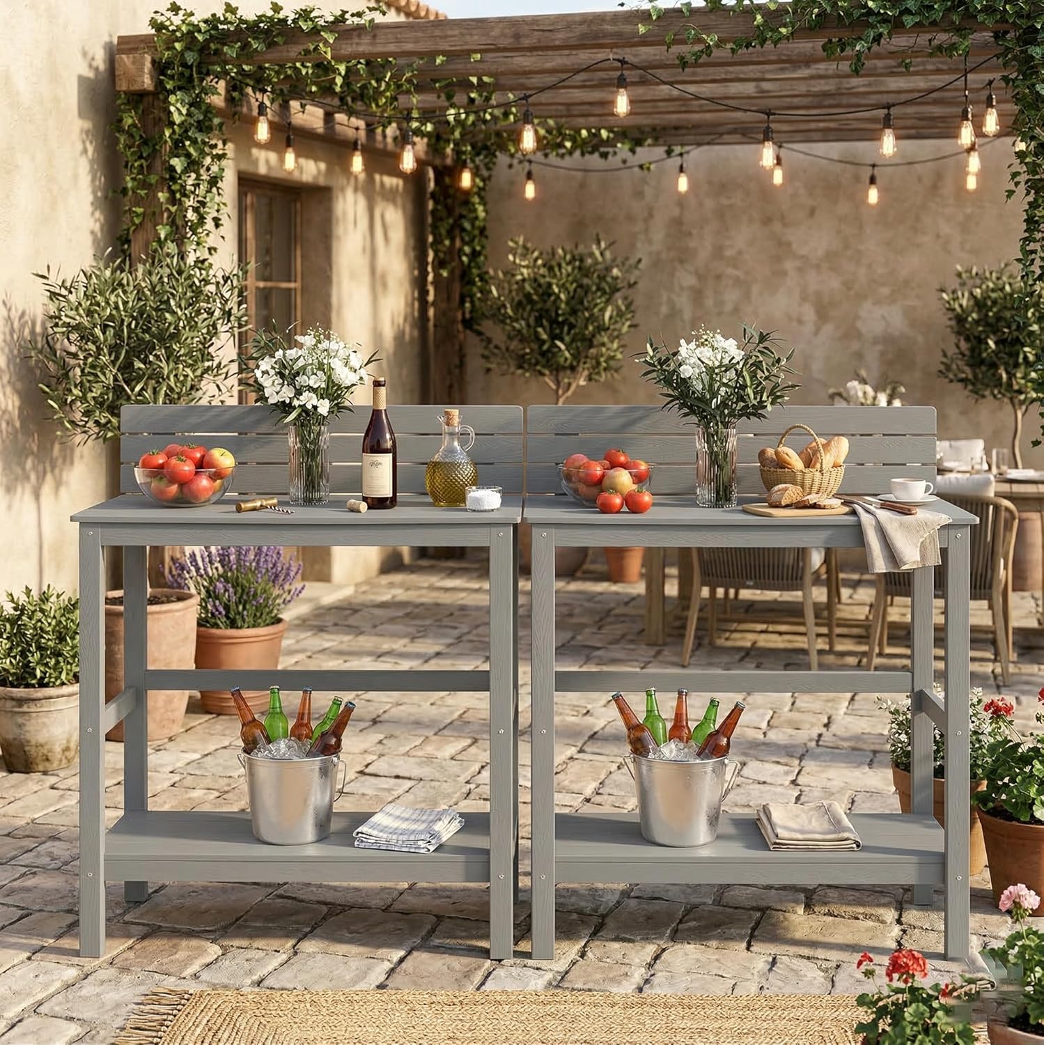 - Integriertes Ordnungssystem: Die offenen Regalböden unter der Platte schaffen Platz für Werkzeugkisten oder Grillzubehör, statt diese auf dem Boden lagern zu müssen.