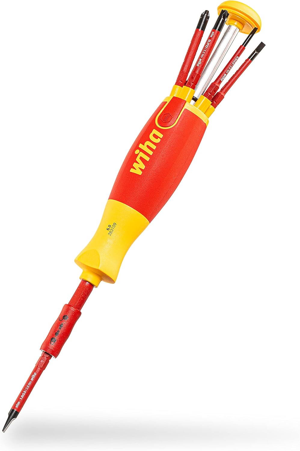 - Slim-Design: Die integrierten slimBits erlauben durch ihren reduzierten Schaftdurchmesser den ungehinderten Zugang zu tief liegenden Schraubverbindungen, bei denen herkömmliche isolierte Schraubendreher oft hängen bleiben.