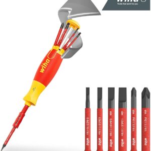 Das Wiha Schraubendreher Set LiftUp electric ist das ideale System für Elektriker und versierte Profis, die auf der Baustelle nicht für jede Schraube den Werkzeugkoffer leeren wollen. Mit diesem 2-in-1 Tool hast du die gängigsten Profile direkt im Griff integriert und bist für Arbeiten an spannungsführenden Teilen bis zu 1.000 V AC sofort einsatzbereit.