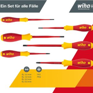 Wiha Schraubendreherset SoftFinish slimFix (35389), 6 teilig, Schraubenziehersatz VDE Elektriker, isoliert 1000v, Schlitz/Kreuz