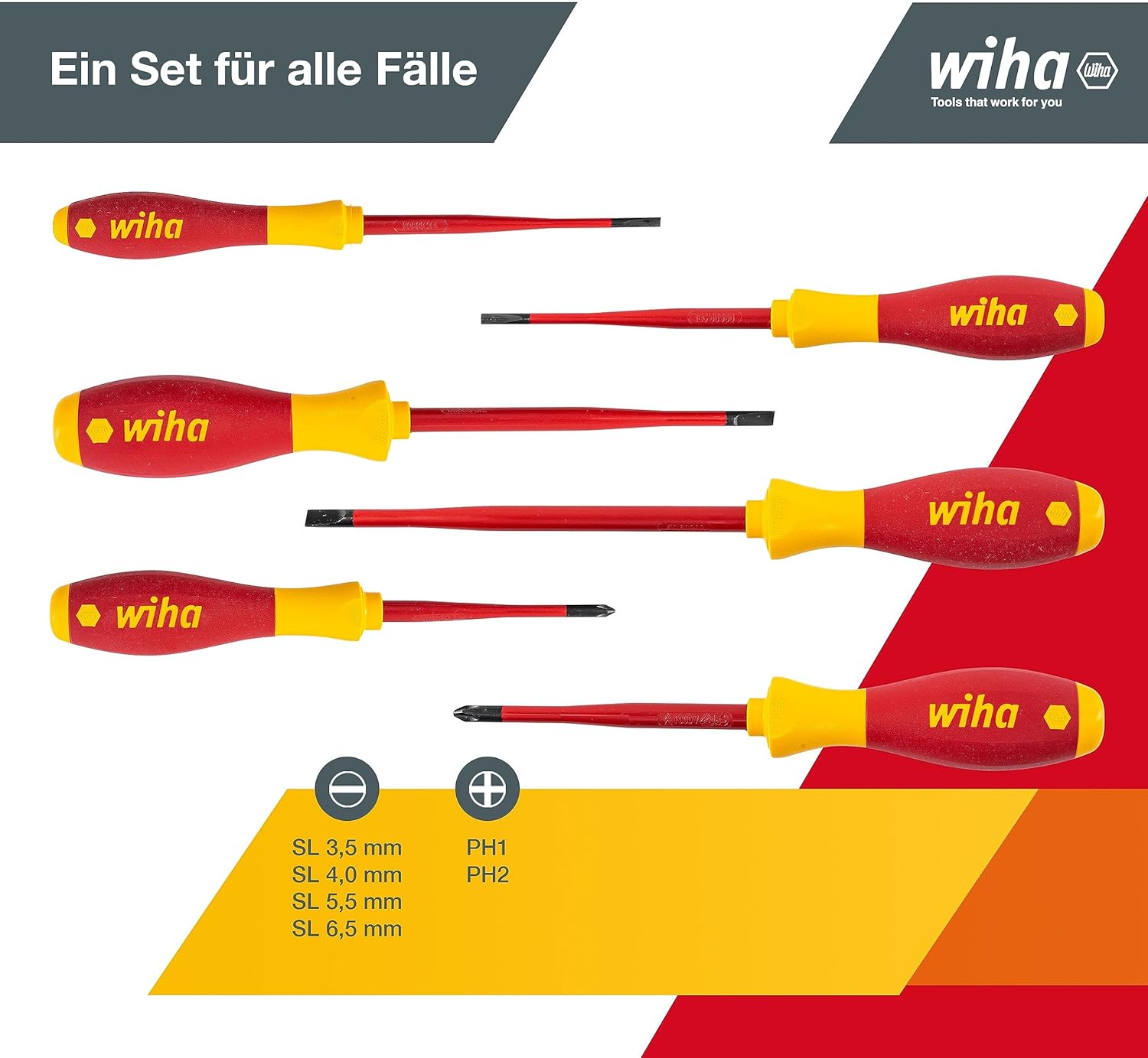 Wiha Schraubendreherset SoftFinish slimFix (35389), 6 teilig, Schraubenziehersatz VDE Elektriker, isoliert 1000v, Schlitz/Kreuz Wiha Schraubendreherset SoftFinish slimFix (35389), 6 teilig, Schraubenziehersatz VDE Elektriker, isoliert 1000v, Schlitz/Kreuz