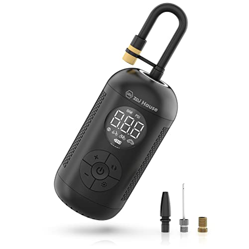 Wiha zai Hause Elektrische Luftpumpe für Fahrrad & Auto mit Akku 3,7 V inkl. Adaptern für Motorrad/Ball/Rad/Kfz bis zu 10 bar/150 psi I Mobiler Kompressor mit LED-Ringlicht I Fahrradluftpumpe tragbar