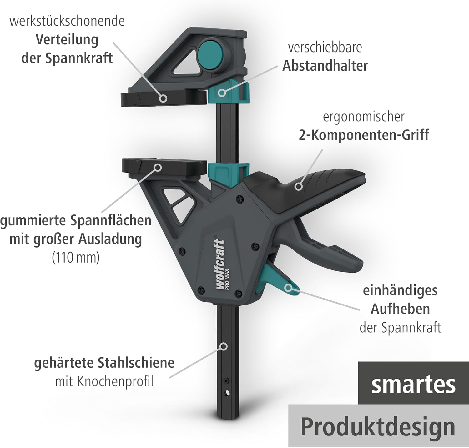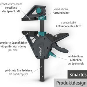 7366 Rezensionen für wolfcraft 2 Einhandzwingen PRO MAX I 8662060 I 250 kg Spannkraft für höchste professionelle Ansprüche I hohe Haltekraft I 450 mm Spannweite I Made in Europe
