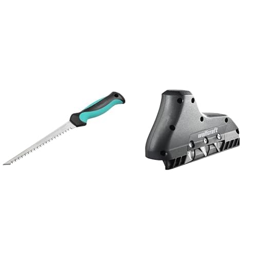 wolfcraft Hand-Stichsäge I 4033000 I Für Ausschnitte in Gipskarton & 3-fach Kantenhobel 4009000 – Trockenbau Hobel mit Dreifachklinge zum Anschrägen von Kanten bei Gipskartonwolfcraft Hand-Stichsäge I 4033000 I Für Ausschnitte in Gipskarton & 3-fach Kantenhobel 4009000 – Trockenbau Hobel mit Dreifachklinge zum Anschrägen von Kanten bei Gipskarton