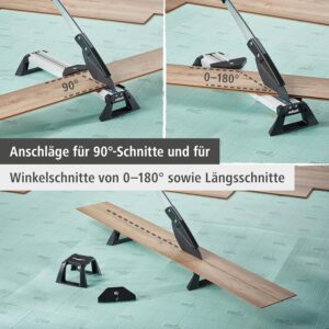 - Staubfreies und leises Arbeiten: Durch den manuellen Laminatschneider (VLC 800) entfallen Lärmbelästigung und gesundheitsschädliche Staubentwicklung im Innenraum.