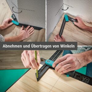 - Präzise Winkelerfassung: Übertrage komplexe Ecken und schräge Wandverläufe direkt auf das Laminat, um Passfehler und Verschnitt zu minimieren.