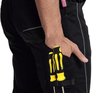 - Optimiertes Taschenmanagement: Strategisch platzierte Werkzeugtaschen halten Zollstock, Cutter und Kleinteile stets griffbereit direkt am Körper.