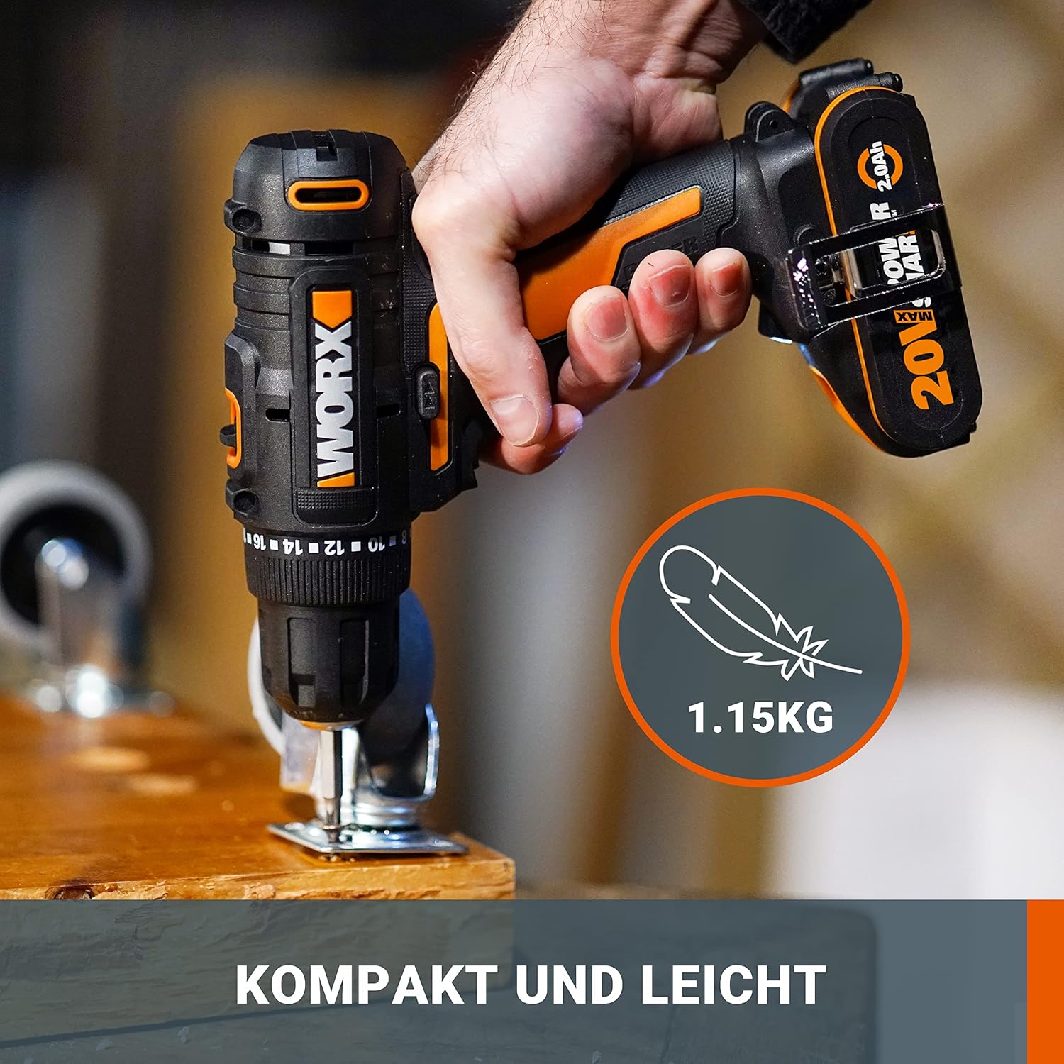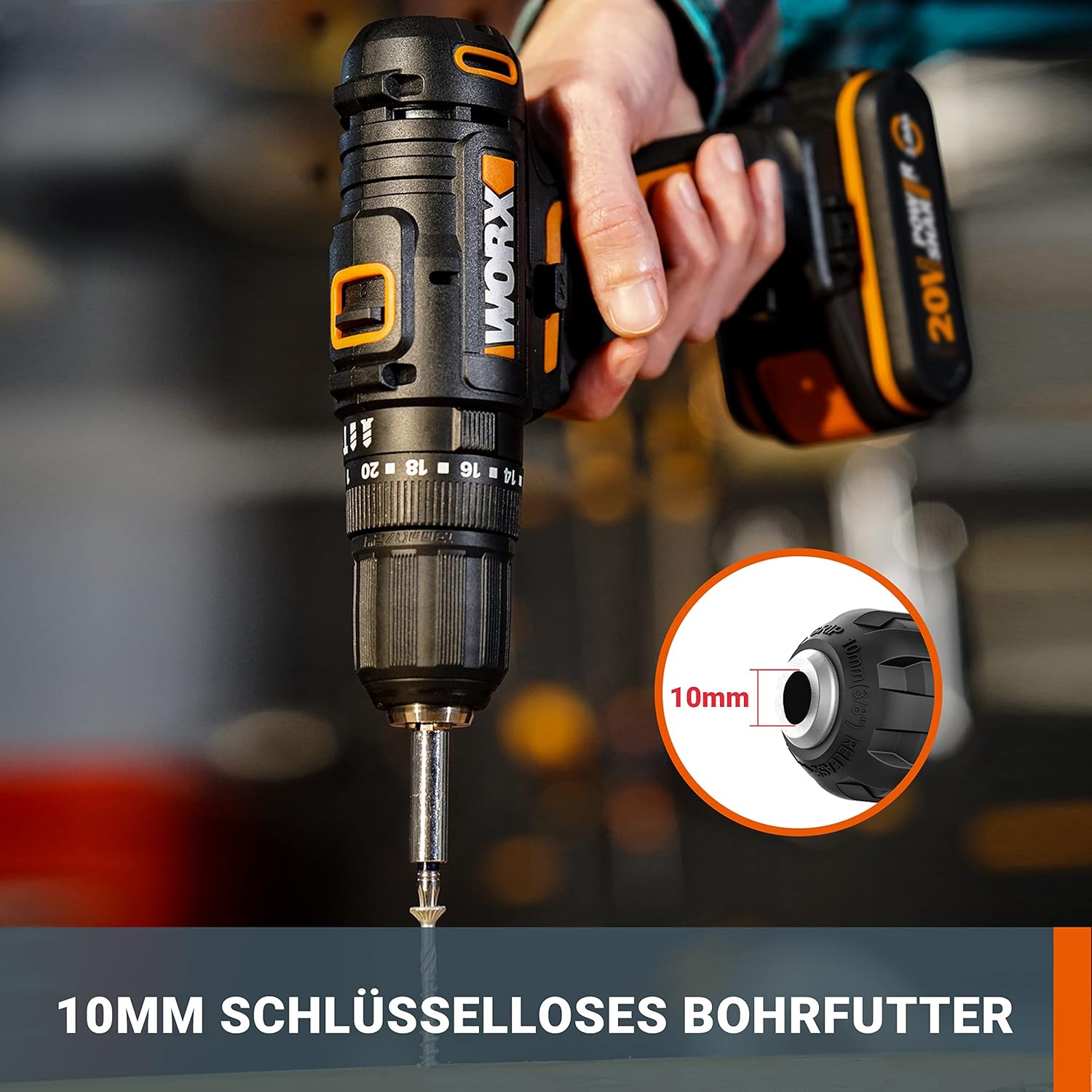 Der WORX WX100 Akku Bohrschrauber 20V ist der ideale Partner für engagierte Heimwerker, die ein kompaktes Werkzeug für den täglichen Einsatz rund um Haus und Hobby suchen. Ob beim Möbelaufbau oder bei kleineren Montagearbeiten in der Werkstatt – dieses Gerät liefert die nötige Kraft für präzises Schrauben und effizientes Bohren. Mit seinem 20V-System bietet er genau die Leistung, die du brauchst, ohne unnötig schwer in der Hand zu liegen.