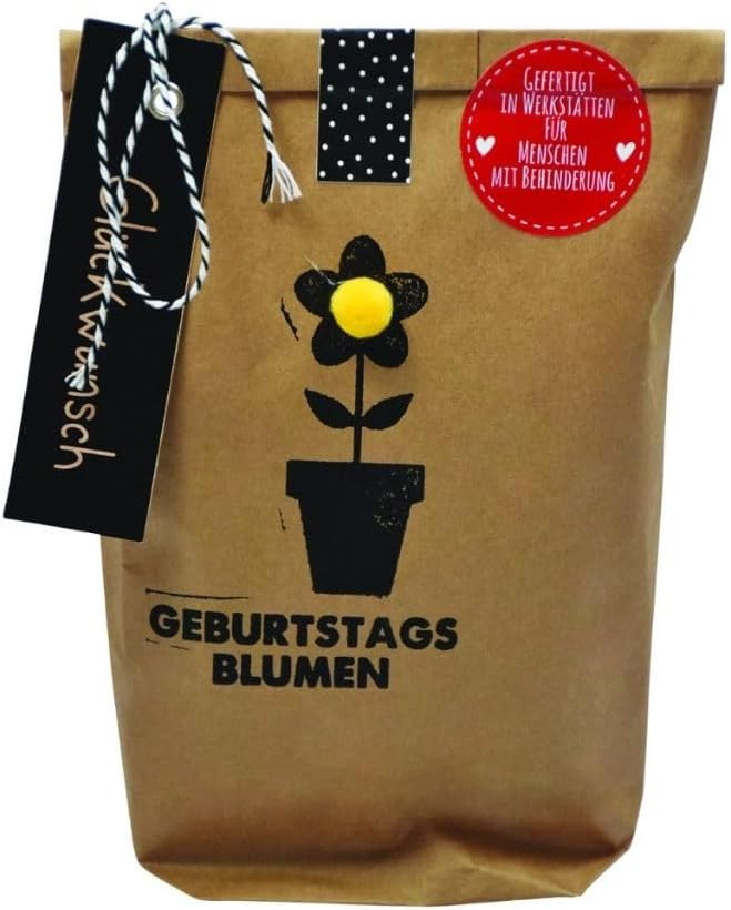 Wundertüte „Geburtstagsblumen“ von WunderleGeburtstagsblumen, die nicht sofort verblühen. Eine tolle Idee, denn Blumensträuße gibt es zum Ehrentag meistens reichlich und somit kann das Geburtstagskind den Blumenstrauß später selber aussäen. Krone aufsetzen, Kerze anzünden und Geburtstagslied singen – geht vorher und nachher! Inhalt: – Lieblingsblumen Saatgut – Pflanztopf – Geburtstagslicht – Spruchkarte – Pflanzanlietung Inhalt kann variieren