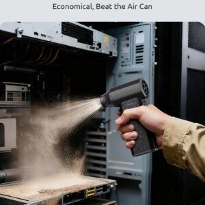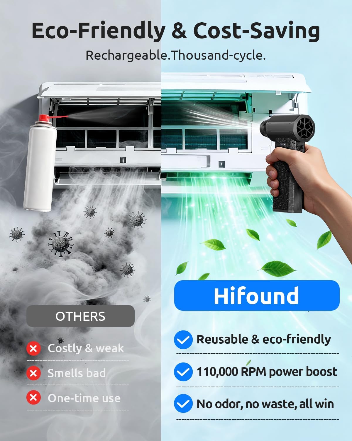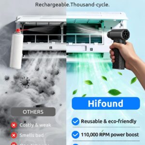 • 【110.000 U/min – Maximale Reinigungsleistung】 Ausgestattet mit einem 120W Hochgeschwindigkeitsmotor erzeugt der Hifound X113 einen Luftstrom von bis zu 45 m/s, dreimal leistungsstärker als herkömmliche Druckluftdosen. Entfernt mühelos hartnäckigen Staub von Tastaturen, PCs, Kameras und schwer erreichbaren Stellen mit höchster Präzision.
